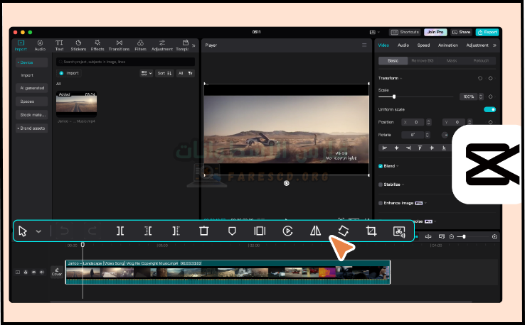 - الخط الزمني (Timeline): capcut pc مهكر حيث يتم ترتيب المقاطع وإضافة التأثيرات وغيرها من التعديلات.