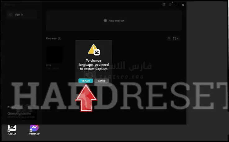 وأخيرًا، لتغيير اللغة يجب عليك إعادة تشغيل التطبيق بالضغط على زر إعادة التشغيل.