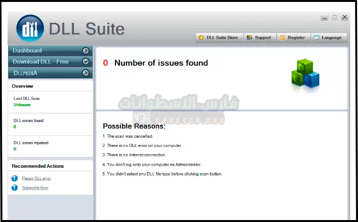 فعّل برنامج DLL-Files Fixer مدى الحياة. يُصلح هذا البرنامج مشاكل ملفات DLL في نظام ويندوز، ويُحمّل جميع ملفات DLL المفقودة أو التالفة لنظام ويندوز 10 (64 بت) من موقع MediaFire، كما يُصلح المشاكل المتعلقة بفيروسات EXE وملفات النظام SYS.